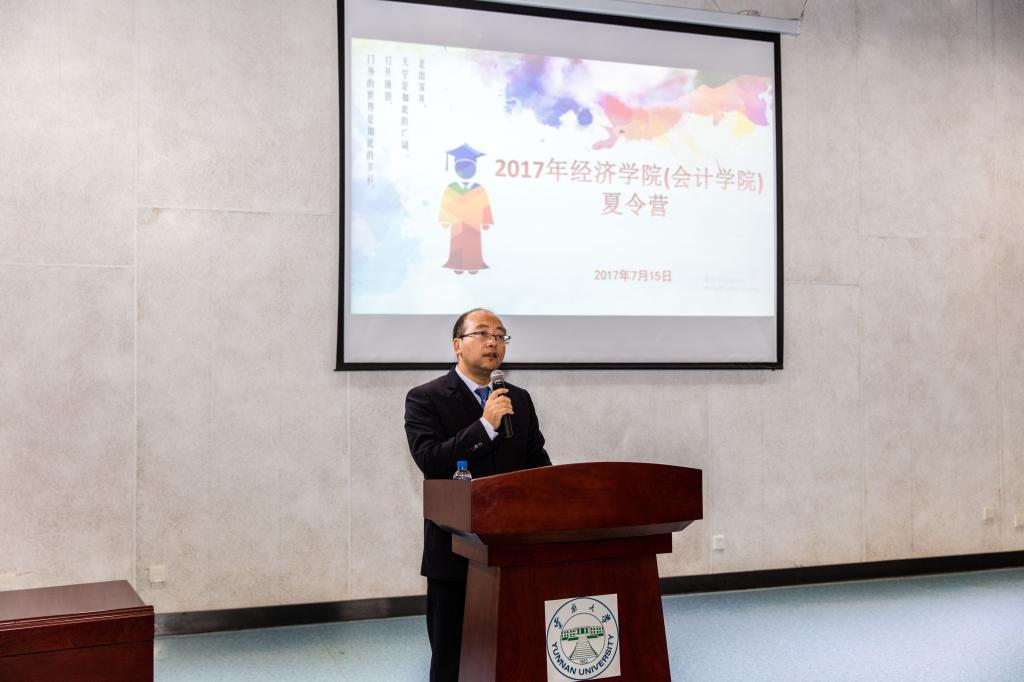 2017年7月15日早晨,yl7703永利官网(会计学院)在学生会堂218举行了2017年优秀本科生夏令营开营仪式。出席本次活动的学院领导有院长梁双陆研究员,党委书记李娟老师,副院长马子红老师,党委副书记武鹏老师等。