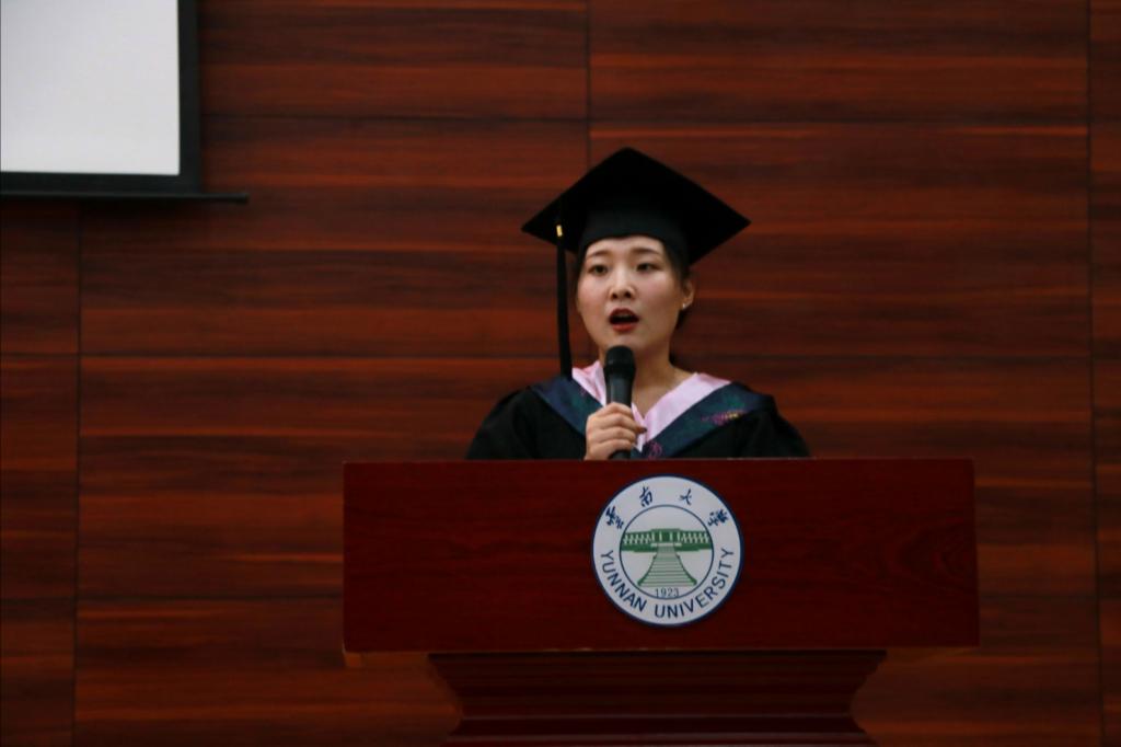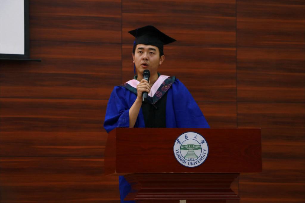 接下来是毕业生代表的发言。本科生毕业生代表庞朝曦表示,感谢老师与母校的培养,感谢朋友与同学的陪伴,今后将以云大经院学生的身份自豪。研究生代表李昂也说道,学校赋予的理想信念将引领我们继续向前。而教师代表徐琰超老师的发言则指出,成长的过程就是在学习和实践中认知教育自己的过程,希望同学都能为自己热爱的事业付出汗水。