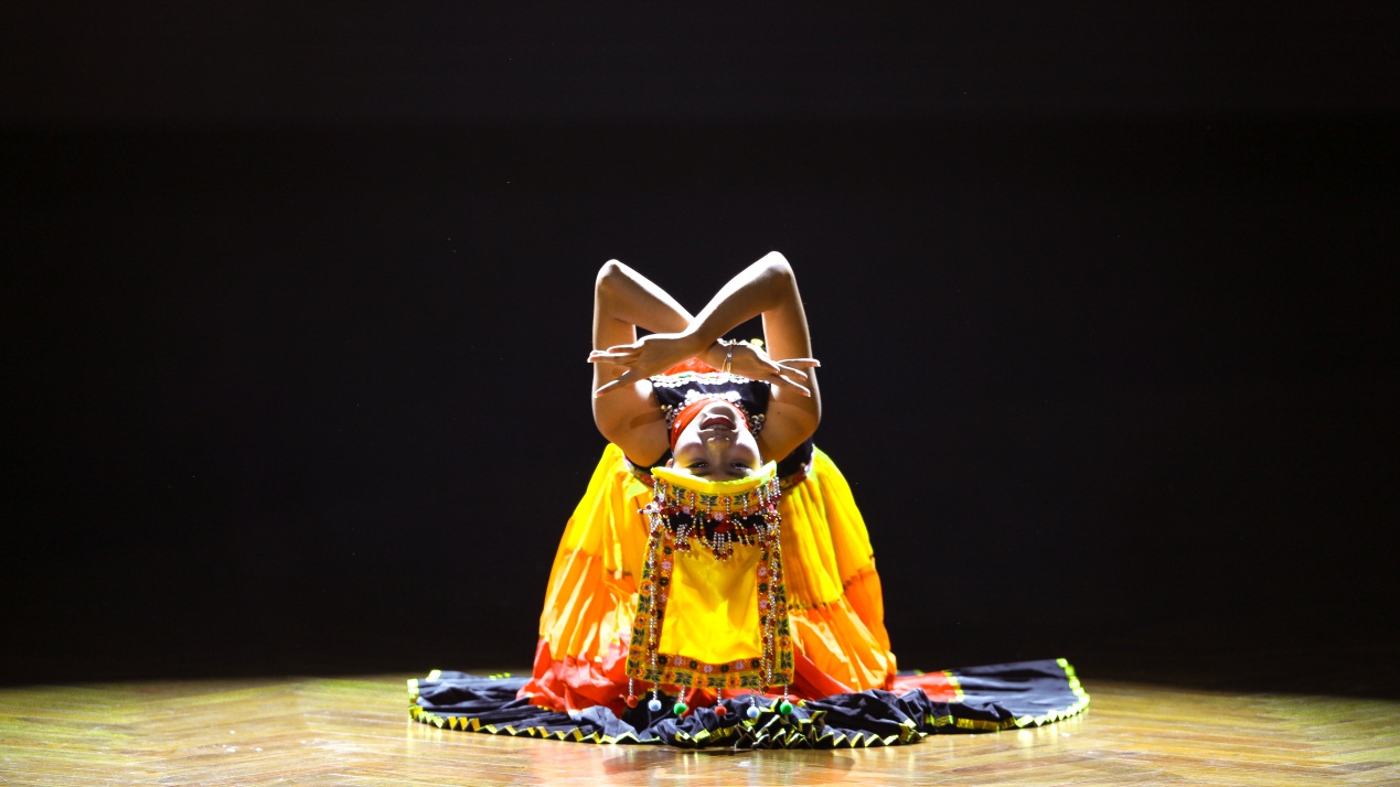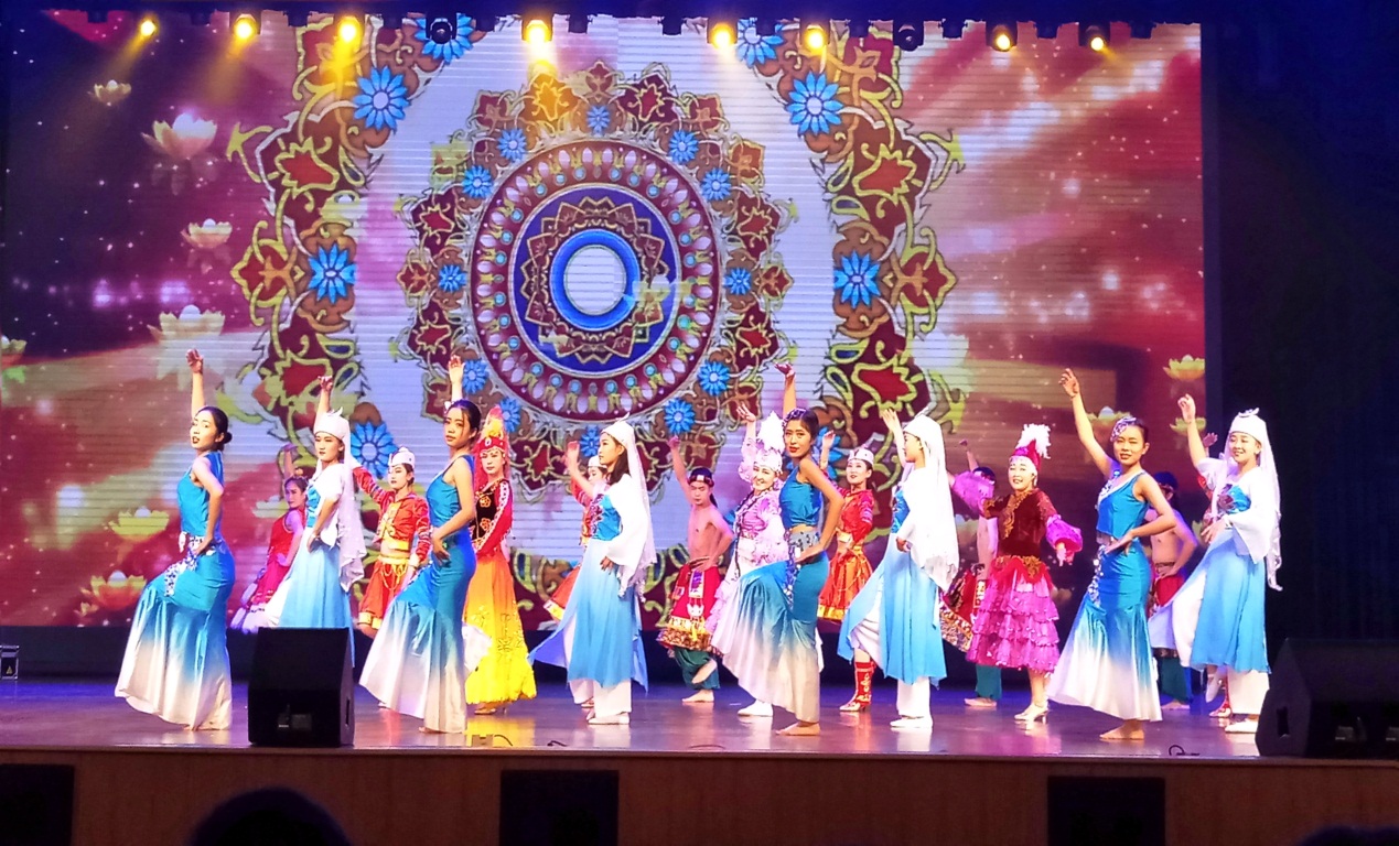随着充满异域风情的印度舞蹈《丝路》,晚会进入到第二篇章——“谱写华章”。在震撼眼球的同时,我们也深刻地感受到了本次晚会的主题“共筑中国梦”。只见她们穿着那耀眼的舞服,用那曼妙的舞姿向我们展示了丝路魅力,引得台下观众阵阵欢呼,喝彩声划破了夜空。