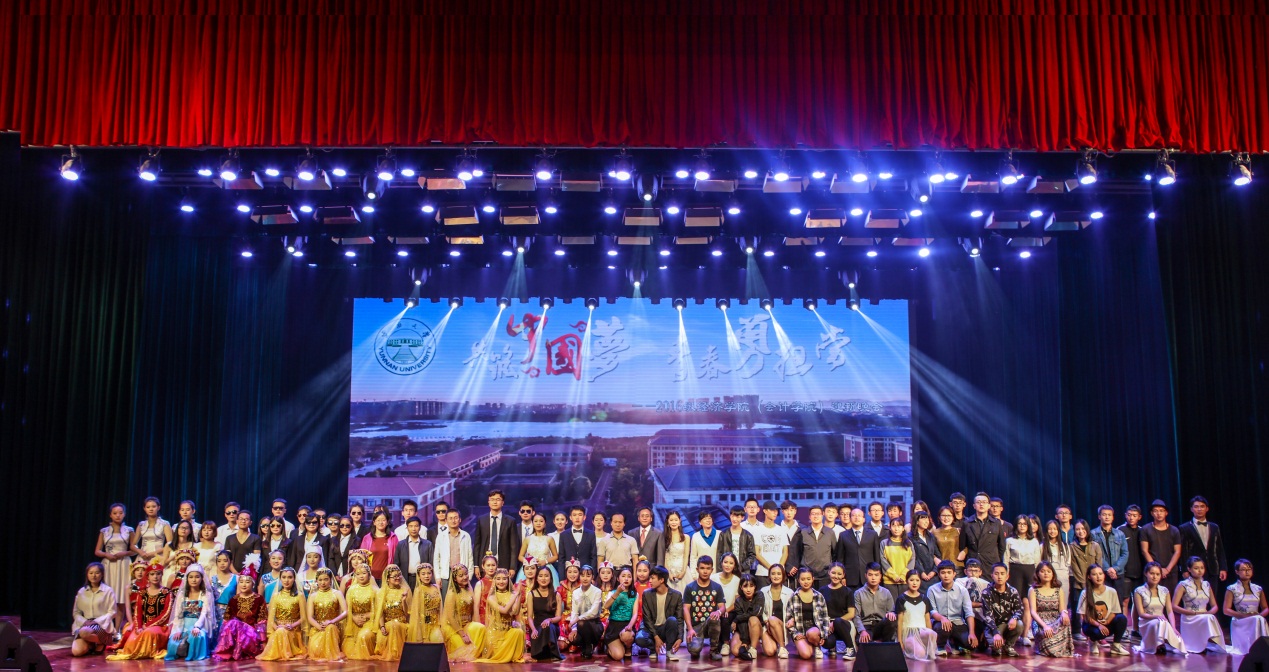 10月26日晚19:00,永利官网在呈贡校区学生会堂举行了yl7703永利官网(会计学院)2016“共筑中国梦,青春勇担当”主题迎新晚会。yl7703永利官网王建华副校长、校团委于春滨书记、何淼淼副书记,学生处张拥军副处长、yl7703永利官网党委梁双陆书记、马子红副书记、罗美娟副院长及各系主任、新生班主任、辅导员及其他教师代表们,还有本科及研究生新老同学们出席了此次晚会。