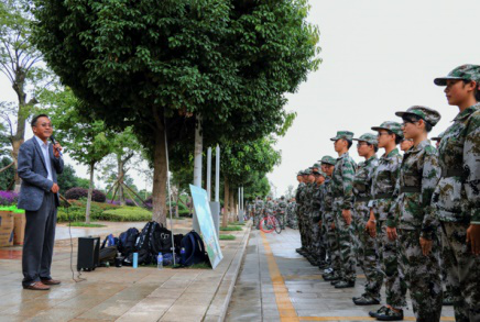 新生们列队站在老师们的面前,他们一个个精神抖擞、眼神坚定,展现出经院学子们吃苦耐劳的精神风貌。慰问开始后,梁双陆老师代表院领导表达了对新生们的关心和祝福,对刻苦训练的新生给予了高度的肯定和赞扬,并鼓励他们将这种顽强的毅力带入到接下来的大学生活中去。梁书记的一番话极大地鼓舞了同学们的斗志,大家纷纷表示,一定不辜负院领导的厚望,严格训练,积极准备,争取圆满完成军训任务,以一份优异的答卷回应老师们的关心与期待。
