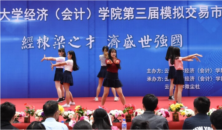 本次“模拟交易市场”以趣味为切入点,为我们带来了一场关于经济知识的头脑风暴。与此同时,激动人心的经济知识竞赛和辩论赛也将同步进行。文艺部青春洋溢的女孩们给大家带来了舞蹈表演,活跃了现场氛围为开幕式增添光彩,展现了永利官网学子风华正茂的蓬勃生机。在开幕式上,郭树华教授首先就本次开幕式致辞,表达了他对模拟市场交易的肯定和期许。随后,刘岚老师敲响铜锣宣布正式开幕。为便于同学们更好地参与到模拟市场当中,主席葛世豪同学向在场观众介绍整个活动流程和规则,现场观众表现出浓厚的兴趣.最终,开幕式在一场幽默诙谐的小品演绎中完美落幕。