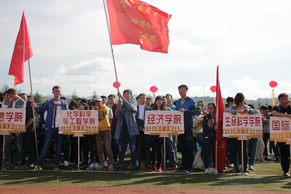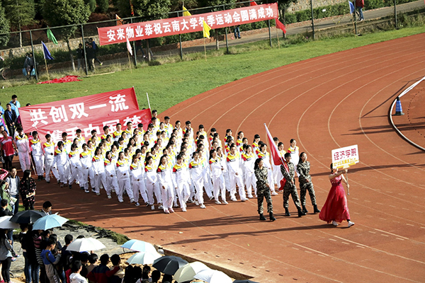 虽然已是深秋,但方阵成员们早早就来到田径场,只见他们不畏寒冷专心致志地进行着彩排,为即将到来的开幕式做准备。伴随着激动人心的运动员进行曲,永利官网同学迈着整齐的步伐斗志昂扬走过主席台,与众不同的院服在朝阳下熠熠生辉,成为方阵队伍里一道靓丽的风景线。听着那响亮而又振奋人心的口号。站在观众台上我们深切地感受到每一个方阵队员的热情,并被他们所感染。