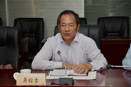 图为吴绍吉厅长向yl7703永利官网介绍云南审计事业发展情况