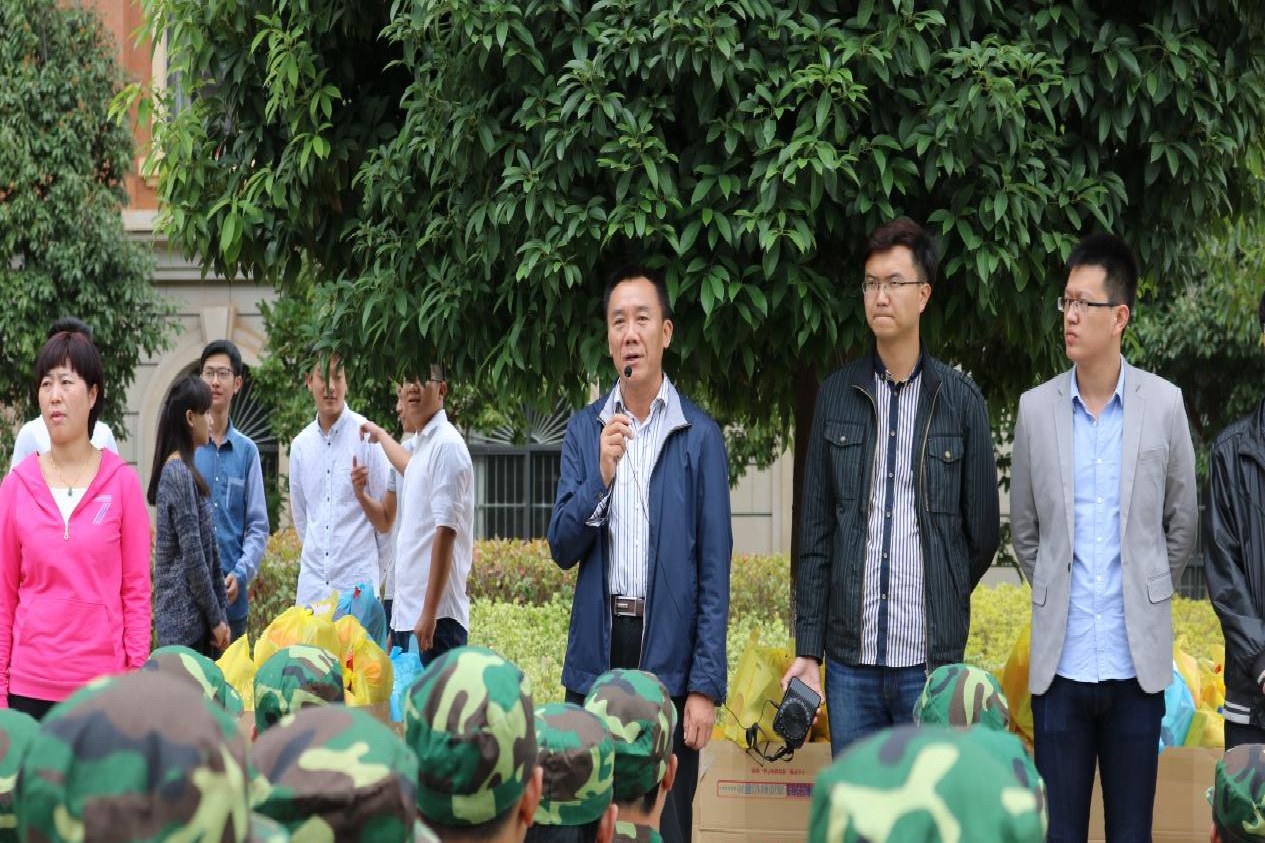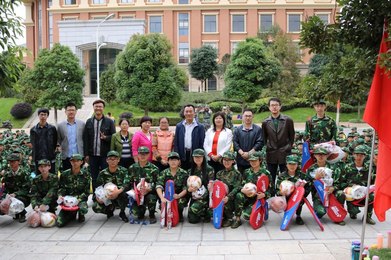 当经济(会计)学院的军训学生全部到齐并坐好后,慰问活动正式开始。李娟老师微笑着向大家介绍了此次前来慰问的领导和老师们。紧接着,施院长向同学们表达了亲切慰问:“民族干部学院的教官还有军训的同学们,大家都辛苦了!军训,作为新生入学的一项基本训练任务,是重要且必要的,所以同学们一定要认真对待。大学生,不仅要认真学习书本知识,而且也要关注国际形势,具备一定的国防知识和国防意识。军训固然艰苦,但同时,我们也可以在有限的时间里获得长期永久的收益——首先,是团队精神。在集体的锻炼中提高自身的凝聚力。第二,是时间观念。训练会使同学们理解分秒必争的含义,赢得了时间便是赢得了未来。第三,就是牺牲精神。为他人,为学校,为国家做出贡献需要一种牺牲奉献精神。不必惊天动地,但要有尽力完成任务的意识和决心。希望同学们好好地配合教官,在训练中相互学习,取长补短。大家有信心吗?”“有!!!”同学们用嘹亮的嗓音表达了对院长和领导的感谢以及圆满完成军训任务的信心。