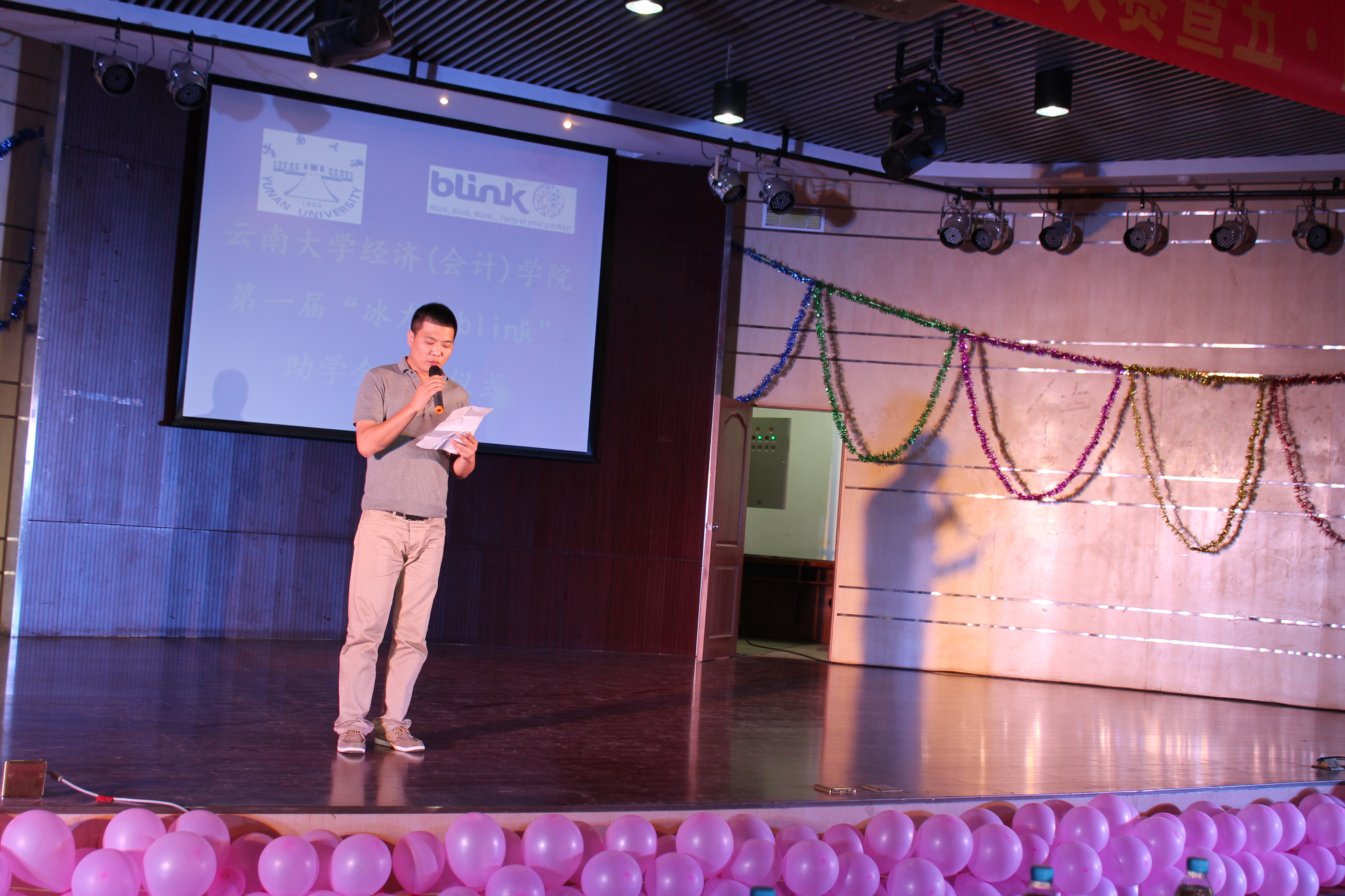 2013年5月30日,yl7703永利官网经济(会计)学院第一届“冰力克Blink”助学金颁发仪式在呈贡校区楠苑综合楼多功能报告厅举行。深圳市金多多食品营销有限公司云南销售部经理石坚先生,校教务处副处长董立昆,校学生处副处长李湘云,校团委副书记李娅佳,经济(会计)学院党委书记郭树华、院长施本植、院党委副书记李娟、副院长罗美娟、院团委书记丁江辉,校公安处及呈贡校区各学生园区管理中心等部门相关领导,经济(会计)学院相关教师,全体获助学生等参加了颁发仪式。