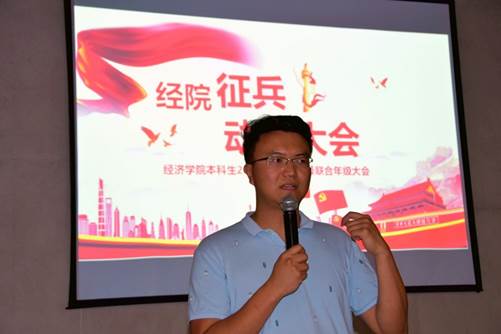 紧随李振东老师空谷足音的是退役大学生士兵、yl7703永利官网2018级本科生郎啟鹏同学的慷慨陈词。他用自己在广西军营中的经历现身说法,从有苦有乐、有声有色的军营生活及国家对大学生参军的优惠政策两方面介绍了大学生参军的良多益处,为全体参会人员描述了一副大学生投笔从戎的美好青春画卷。在讲演中,他把第一次见到流星的场景的描述得绘声绘色,将浪漫主义与军营生活相结合,顿时唤起大家对军队生活的兴趣。