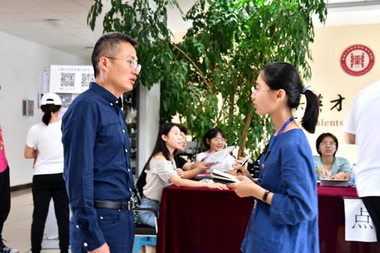 迎新期间,院党委李娟书记来到新生接待工作现场,问候新生与志愿者们,为新同学送上了祝福和期望。