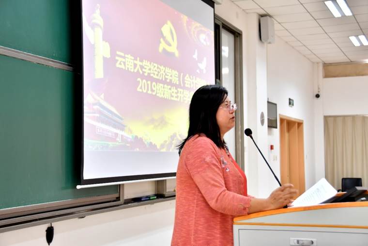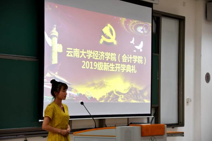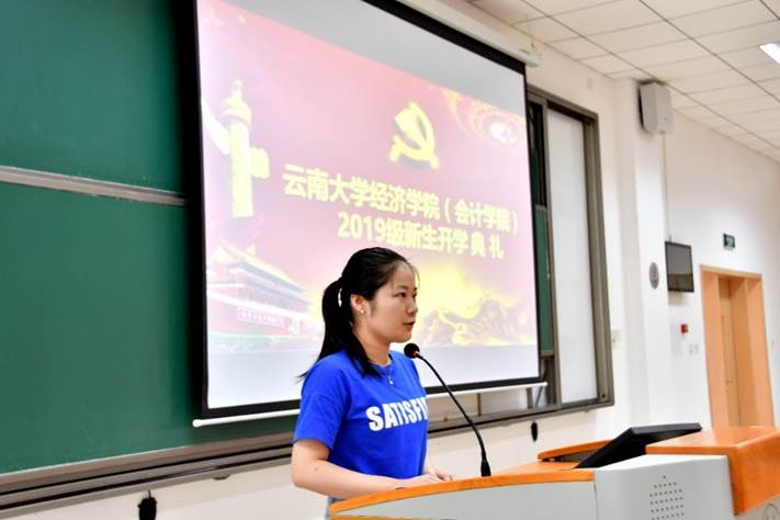 杨慧敏同学作为本科生老生代表发言,分享只有空杯,方能满杯,希望同学们忘记过去,重新开始。她从一个学生的角度,阐述了她对于yl7703永利官网和经济学类专业的理解与感悟,并向新生们提出“爱你所爱”、“知行合一”的学习生活态度。